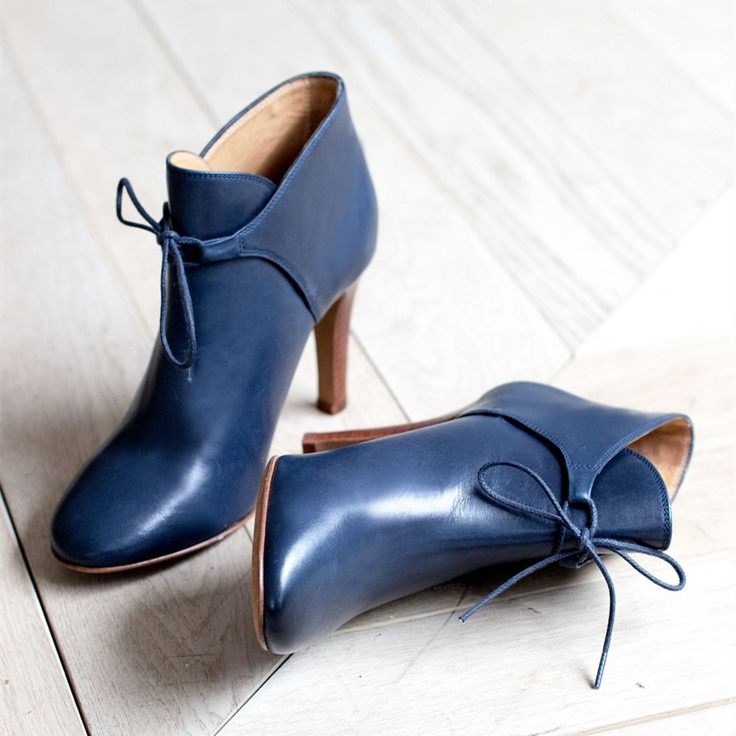 Discover our unique Navy Blue Lace-Up Boots Round Toe Block Heel Booties for Women,perfect for the very best in custom,handmade shoes with FREE shipping.