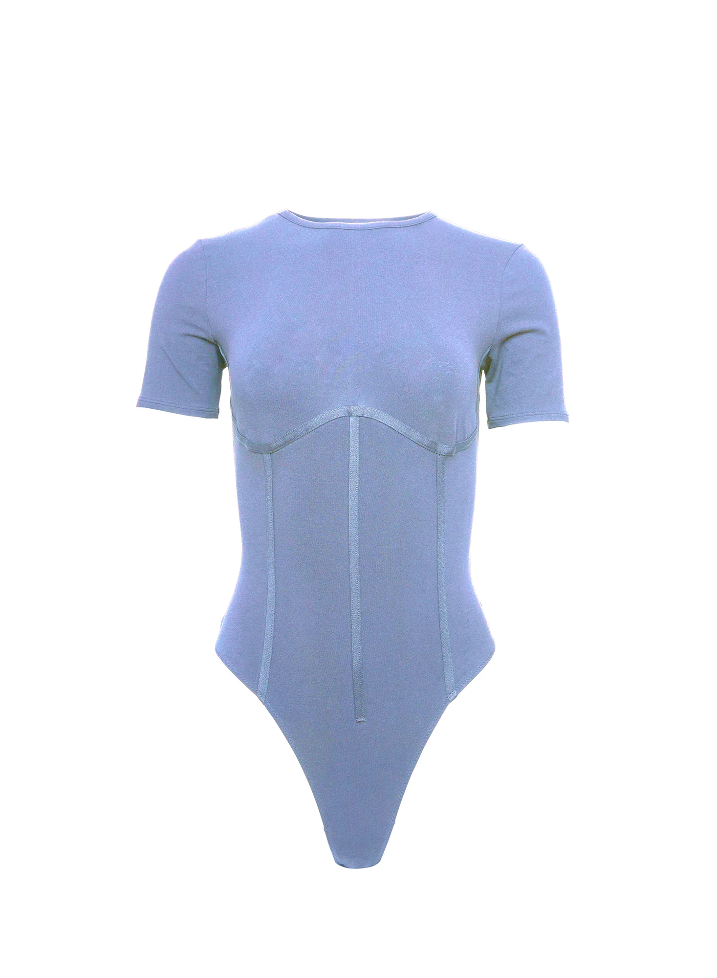 Our Organic Cotton T-Shirt Bodysuit, cut from super-soft & lightweight certified organic cotton. Features short sleeves and lingerie-inspired, corset effect princess seams to give shape and flatter your figure while being comfortable enough to wear all day. Bottom snap closure. Layer over the Charlotte Spacer Plunge Bra and No Show V String.
